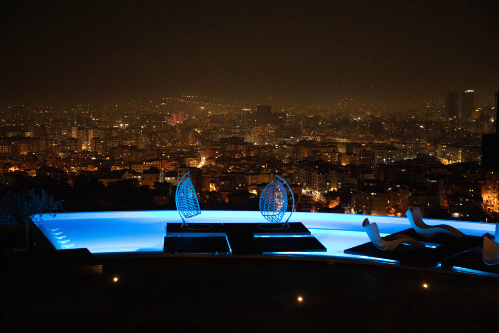 Step out onto Arka rooftop and you’re met with wow-factor: a glamorous pool reflecting the city lights, and a breathtaking panoramic view of Tirana that turns every dinner into a cinematic moment. Whether it’s a romantic date, a stylish night out, or a special celebration, this spot knows how to impress.